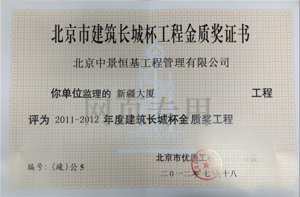 •  北京新疆大廈工程(魯班獎)