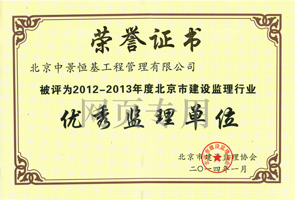 •  2012-2013年度優秀監理單位證書