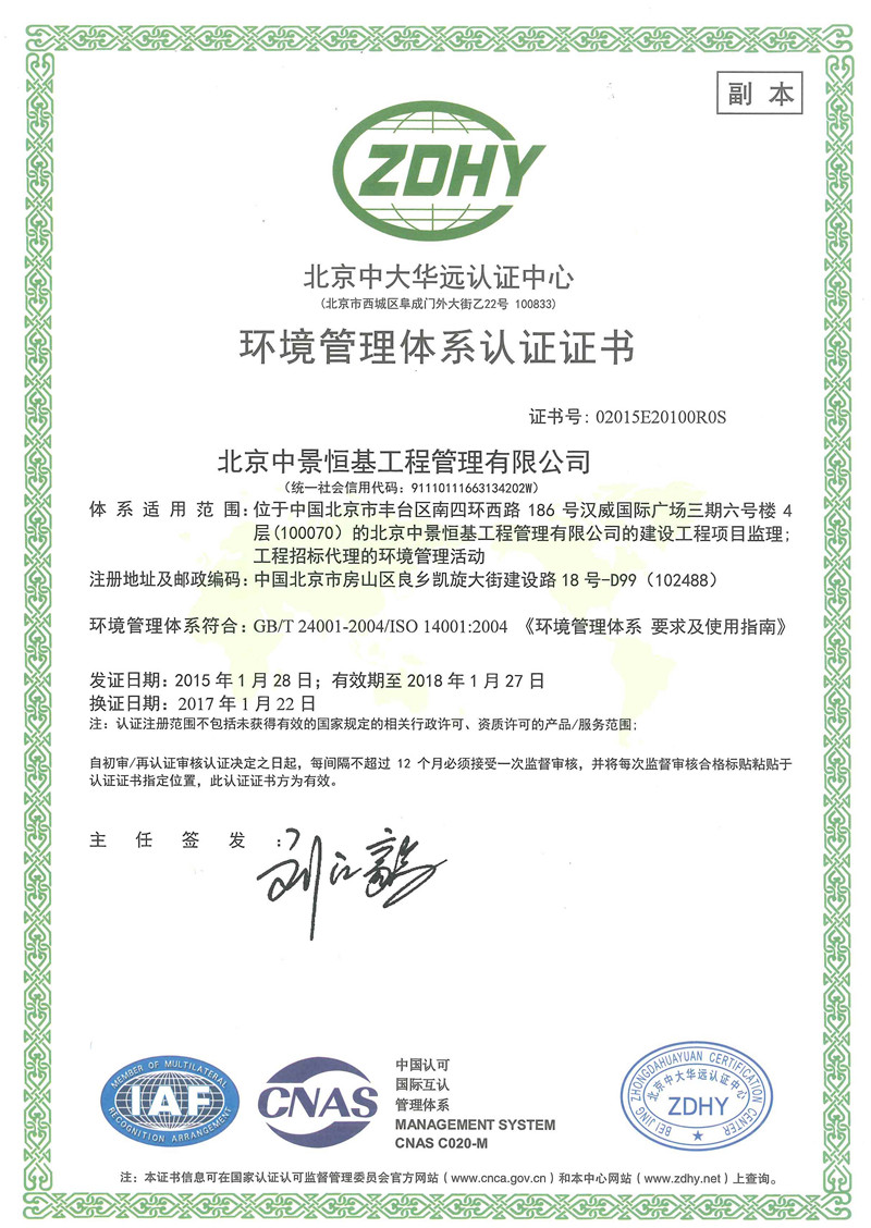 北京中景恒基工程管理有限公司(以下簡稱“公司”) 具有工程監理綜合資質、造價咨詢甲級資質、水利工程、人防工程監理資質和工程招標代理資質,是全國百強監理企業之一。主要從事工程監理、造價咨詢、項目管理、招標代理等咨詢服務 業務。 公司自成立以來,始終注重自身建設,強化內部管理,形成了一套標準化、信息化、科學化的管理模式。率先通過了ISO9001質量管理體系、IS...