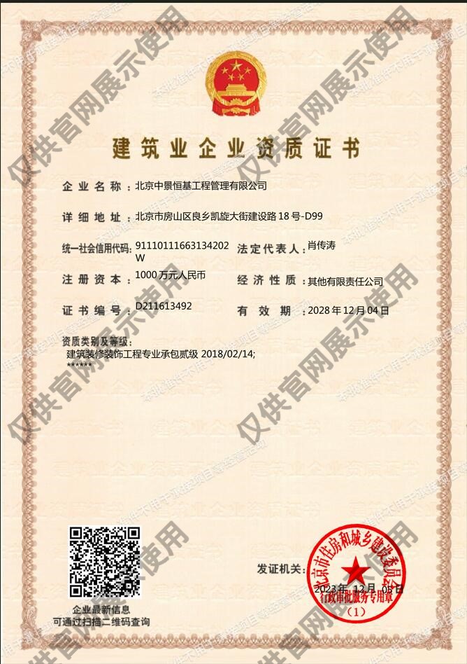 •  建筑裝飾裝修承包二級
